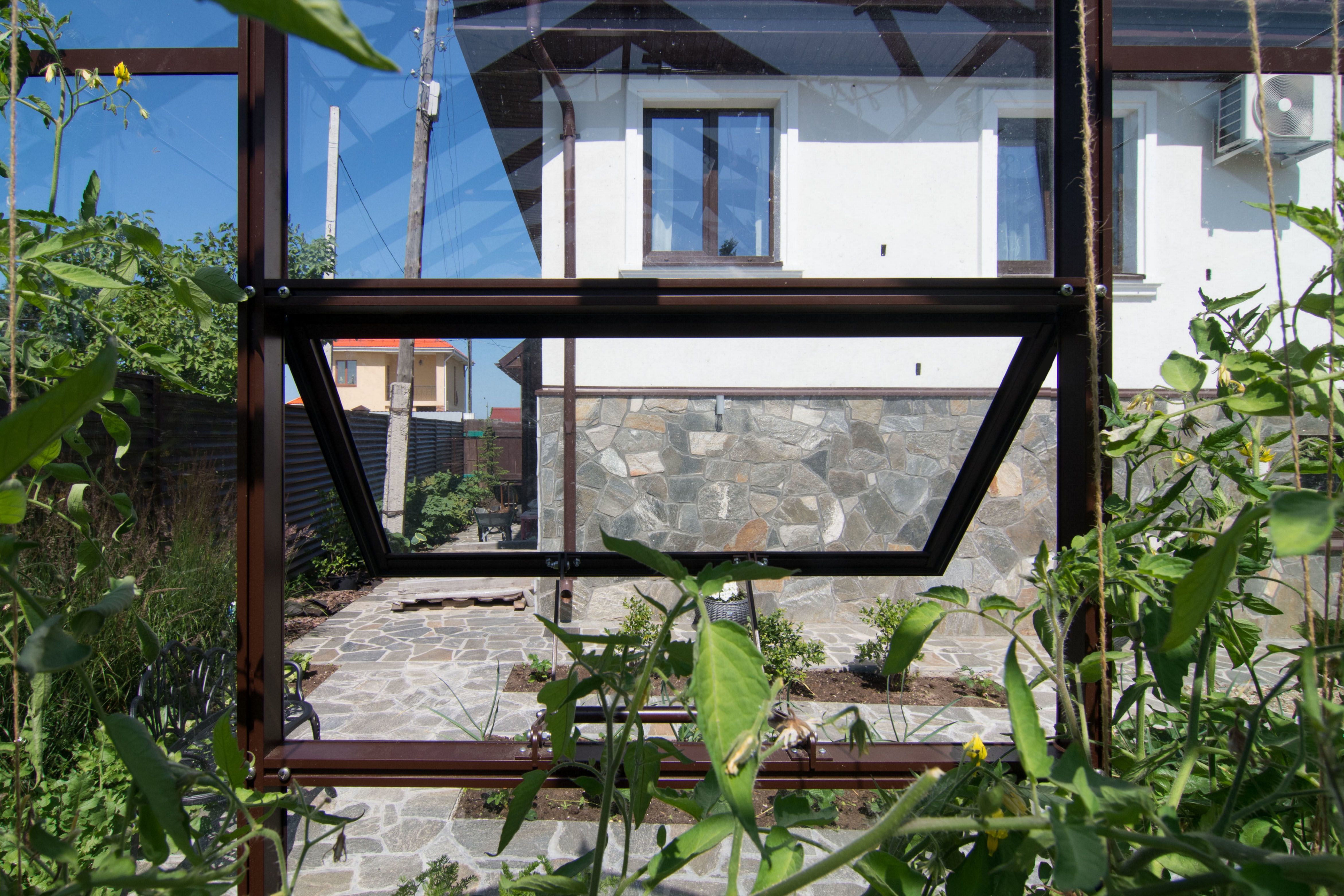 Такие габариты создают просторное внутреннее пространство, позволяют разместить несколько полноценных грядок и без ограничений выращивать высокорослые культуры;